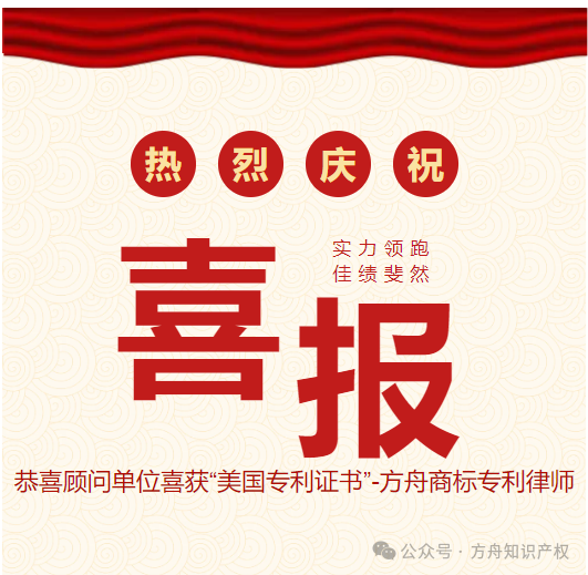 喜报 | 恭喜顾问单位喜获“美国专利证书”-方舟商标专利律师
