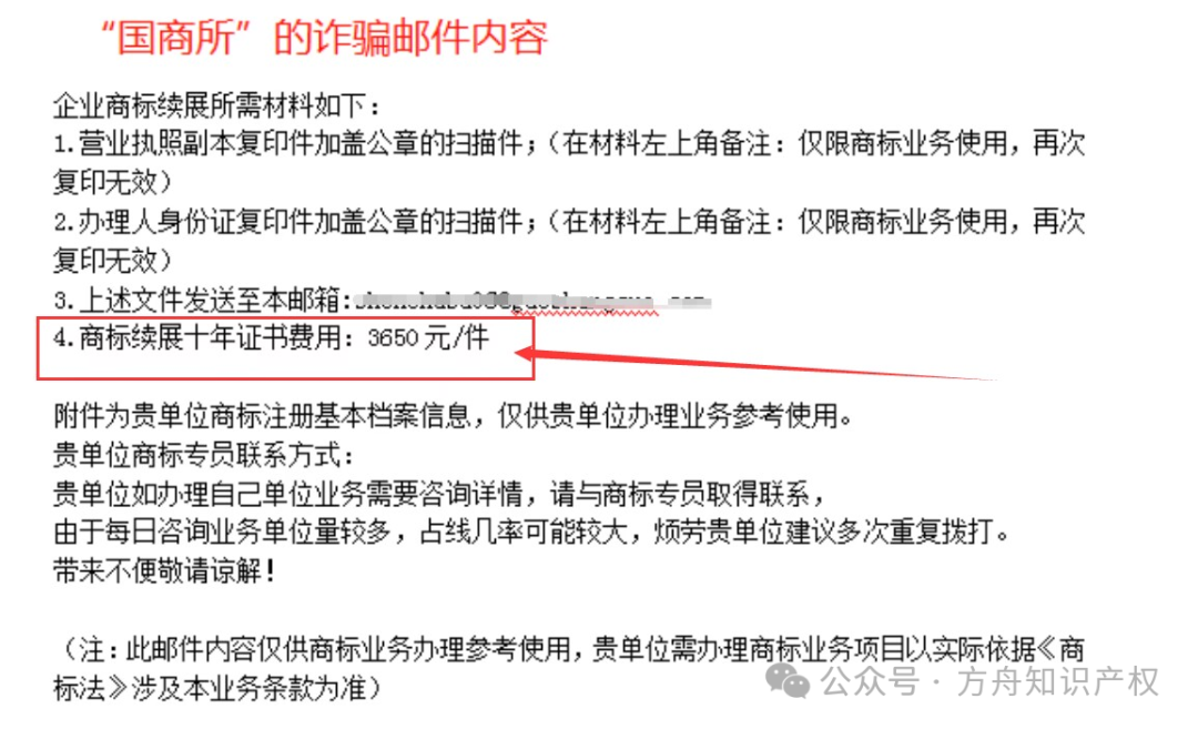 骗局一:提前3年通知续展,骗取高额续展费用。